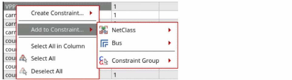 - Right-click a net in the Net column. A shortcut menu is displayed.