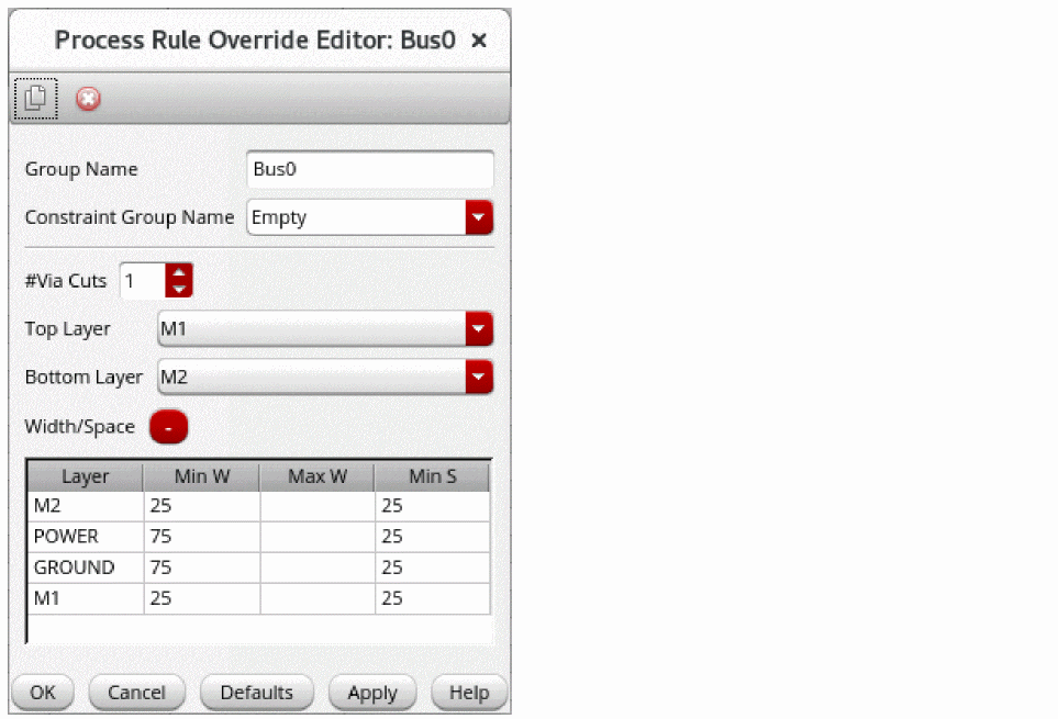 - Repeat the previous steps to add a bus constraint on other nets.