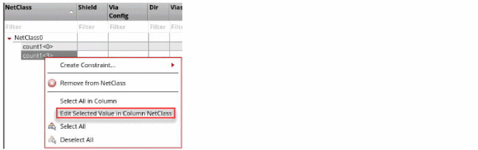 Alternatively, right-click the constraint and then select Edit Selected Value in Column NetClass.