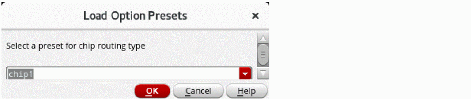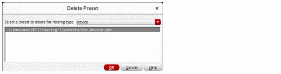 The Delete preset options button lets you delete an existing chip assembly routing preset. To delete an existing preset: