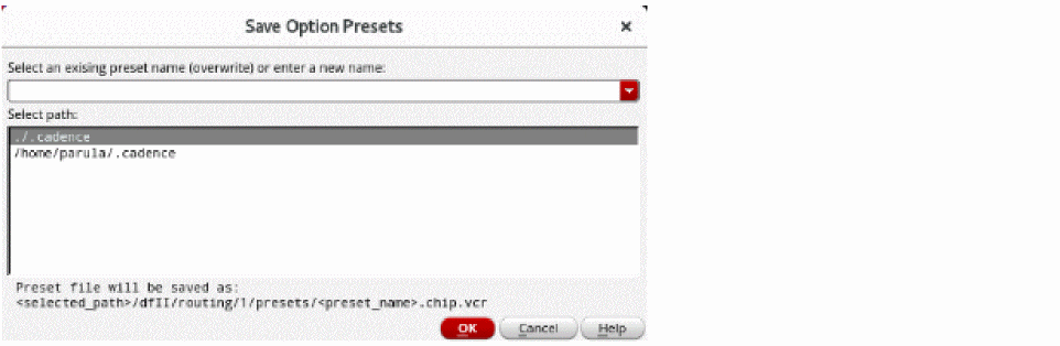 A preset is a set of predefined routing options and user override constraint values, which can be saved to a file. In the routing flow, the presets are used to reuse the settings and routing configurations that you had specified in the Routing assistant.