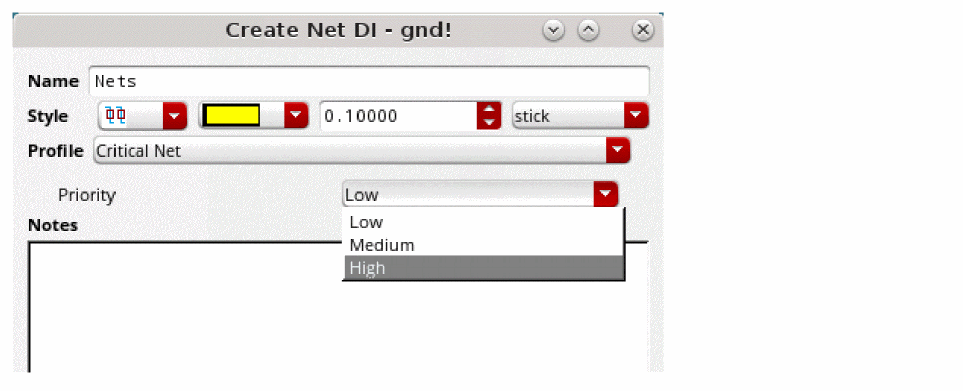 In the Profile drop-down list, select Critical Net to filter for critical net design intents. You can customize the priority of the design intent by choosing from Low, Medium, or High.