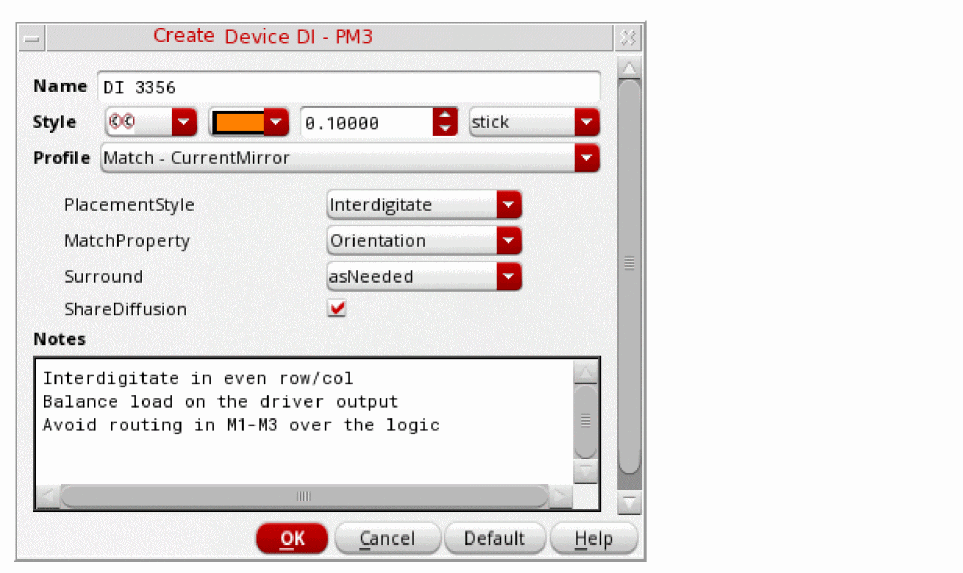 In Schematics XL, define property requirements in the Notes section. Add any additional notes for the layout designer about the purpose of the design intent, its properties and to record any special considerations for implementation.