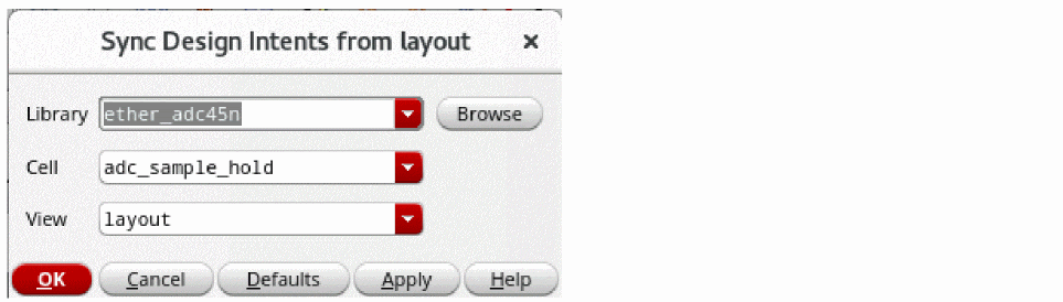 The Sync Design Intents from Layout form displays. The form is displayed only if the associated layout view for the schematic is not open.
