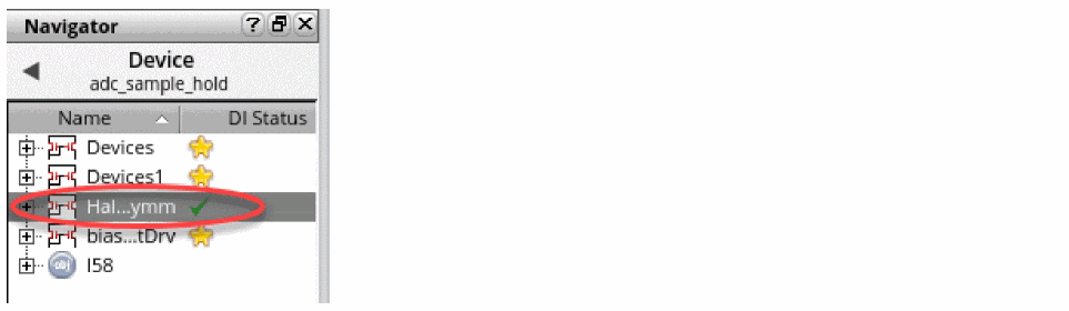 - Select the library, cell, and view name that contains the DI in the layout for which the selected DI is to be synchronized in Schematic XL.