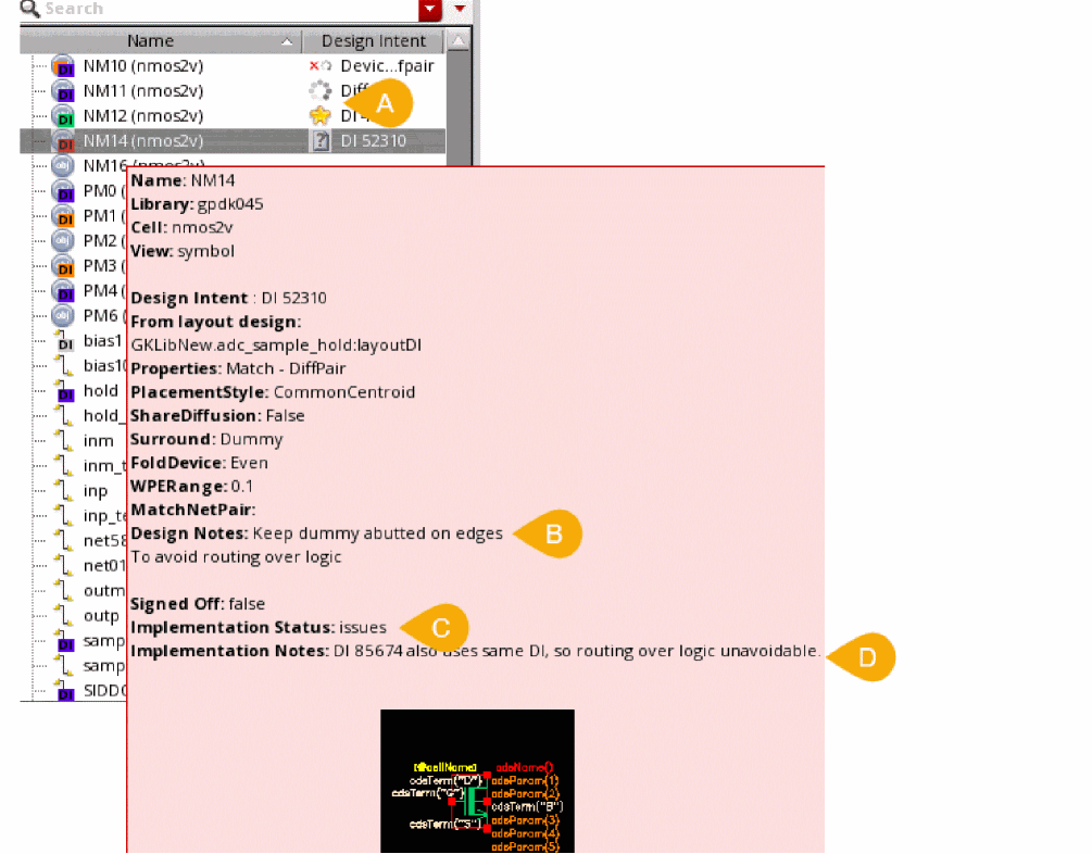 The design intent in the design is synchronized between the schematic and layout cellviews.