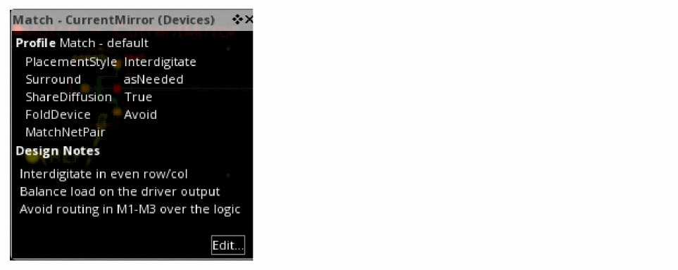 Each info balloon contains details of the design intent including the profile properties and notes. In Layout XL, the Implementation Status and Notes are also displayed.