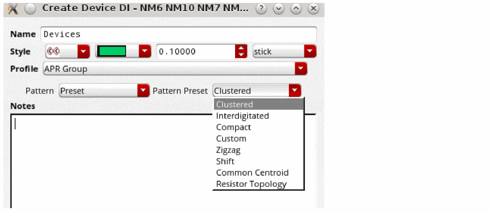 list(nil 'name "PlacementStyle" 'type 'enum 'defValue "Symmetry" 'items '("Symmetry" "CommonCentroid" "Interdigitate"))
