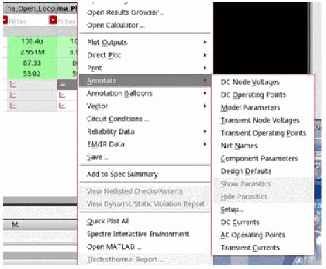 The solution is to annotate the operating points through the Results tab to refresh the directory path in the Annotation Setup form. To do this right-click a result name and select Annotate. You can then choose what to display.
