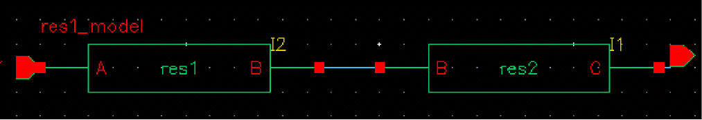 In this netlist, an empty subcircuit is printed for cell res1. Here, res1_model is the model name applied to the cell.