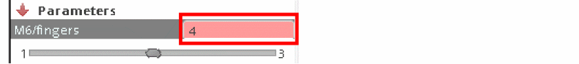 Double-click the value displayed for the selected design variable or parameter and type the new value. You can also type a value greater than the maximum range displayed on the slider bar. The new value is displayed with red background as shown in the figure below. If this specified value is valid, the simulation runs successfully.