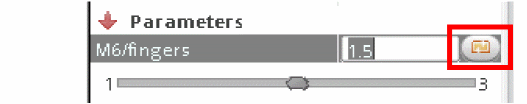 After changing the value for a parameter or a design variable, if you want to change the value with the one specified in the design, double-click in the value field. A button appears as highlighted in the below figure. Click this button to replace the displayed value with the original value. You can also double-click the specified maximum and minimum values in the slider bar and then specify new values.