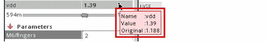 When you change the variable or parameter value, the updated value is passed to the simulator and an instant simulation run takes place. This simulation is fast because the simulation run does not generate the netlist again.