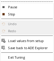 The Tuning menu also appears when the Real Time Tuning assistant is displayed. This menu includes the following commands: