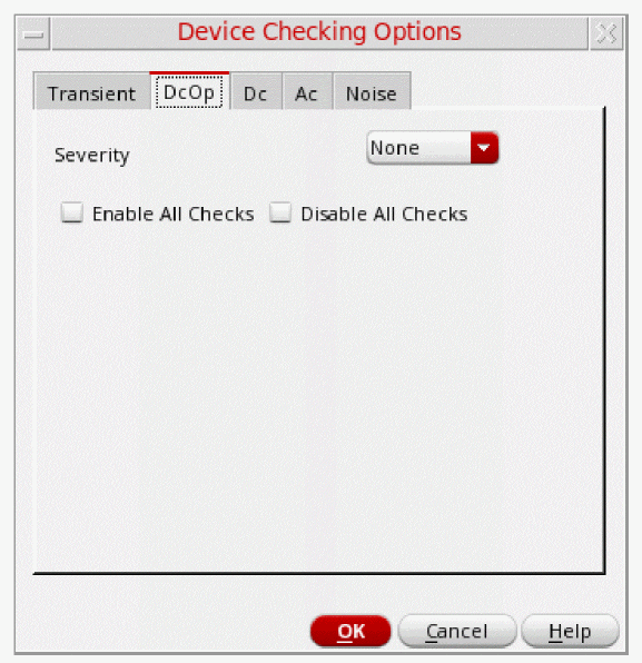 - Disable All Checks—Select this check box to disable all the device checks for transient analyses.
