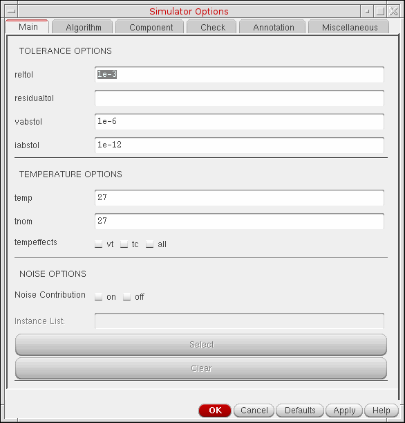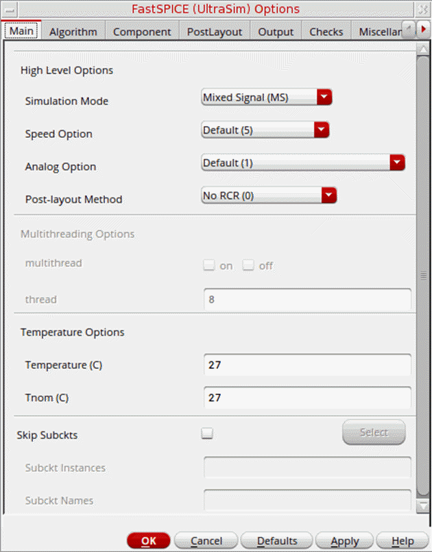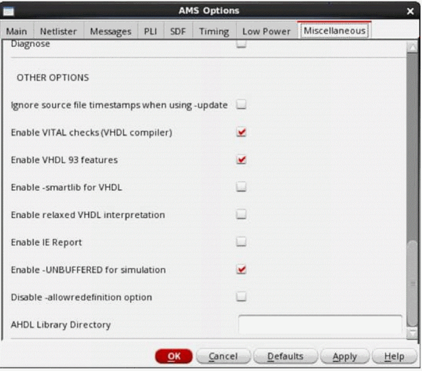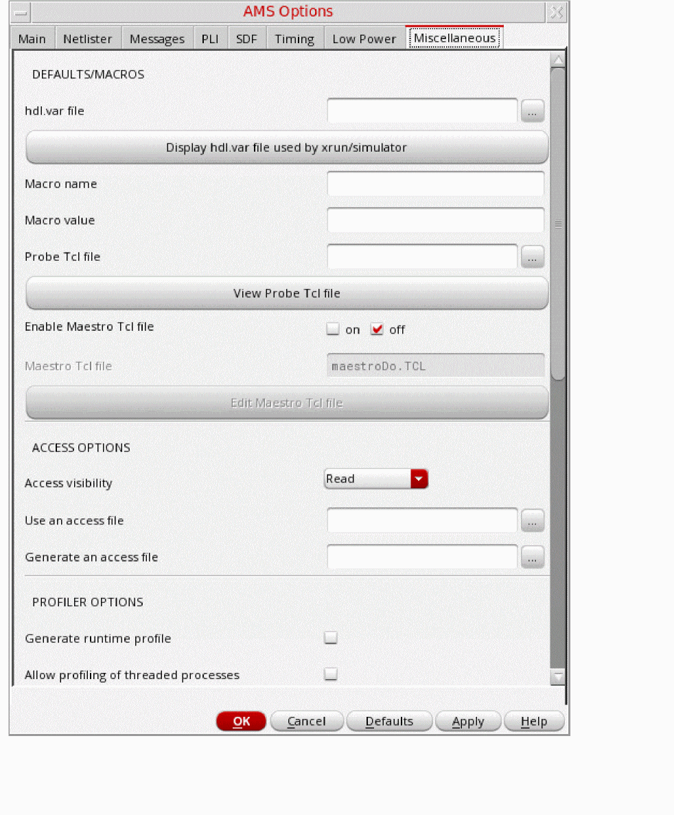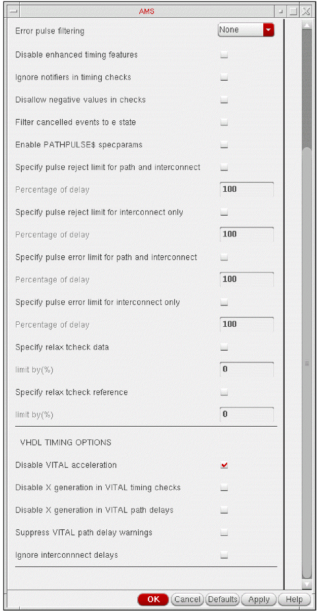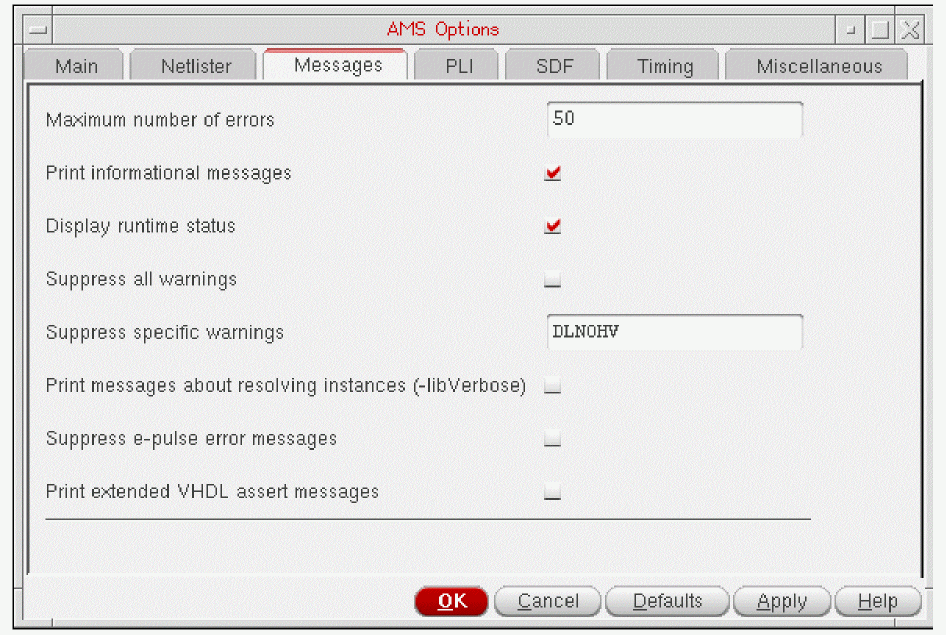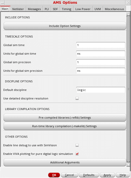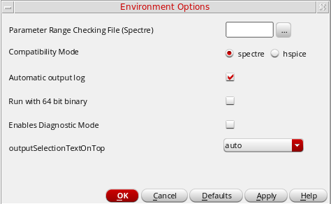 You can set AMS netlister and simulation run options by choosing Simulation – Netlist and Run Options. This brings up the Netlister And Run Options form.