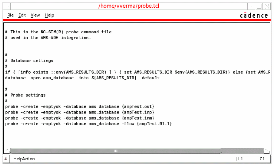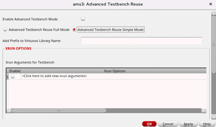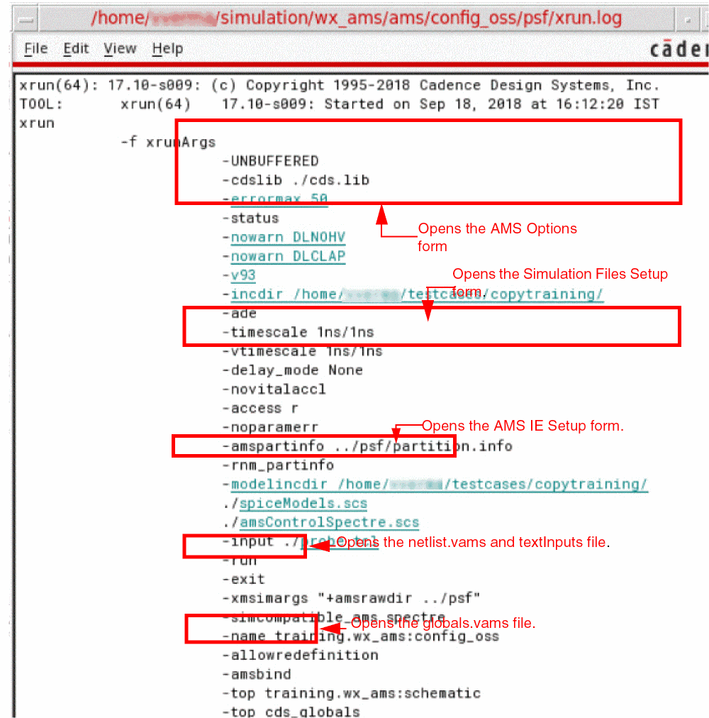 MODEL_DIRused in this example) when specifying values for options.runams -lib testLib -cell top -view config -netlist -simulate -rundir run2 -analogcontrol './setup/amsControl.scs' -modelfile $MODEL_DIR/models/spectre/gpdk090.scs'(NN)' -cdsglobals './setup/cds_globals.vams' -connectrules userDef:ConnRules_25V_full_fast:connectLib/ConnRules_25V_full_fast.vams -tclinput './setup/probe.tcl' -log './logs/run_control.log'