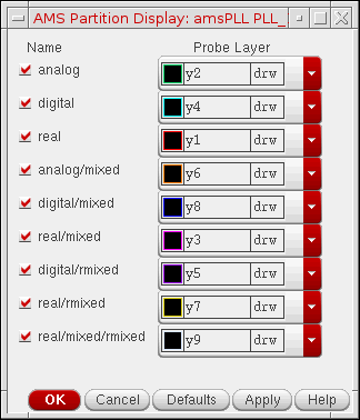 Once you elaborate a design or run a simulation, you can view your data and distinguish between analog instances or nets, digital/real instances or nets, and mixed instances or nets by the color associated with each partition.