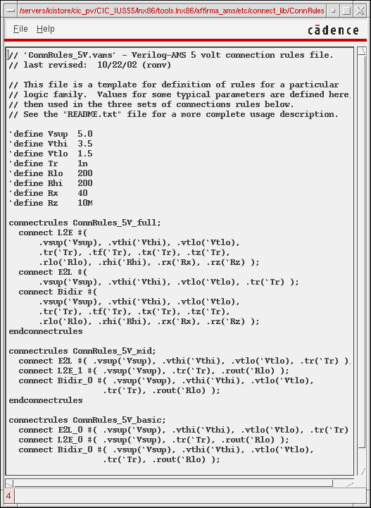 For more information, see the Mixed-Signal Aspects of Verilog-AMS chapter of the Cadence Verilog-AMS Language Reference.