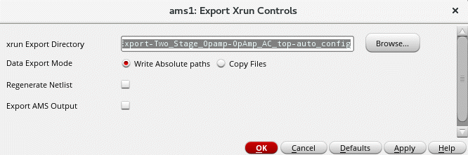 myrundirwhere the netlist and data files will be placed.runams -lib mylib -cell top -view config_ams -netlist all -simulate -rundir myrundir