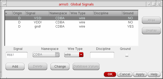 You can use the Global Signals form to declare a signal that is used as an out-of-module signal reference. For more information, see Working with Global Signals in AMS. -