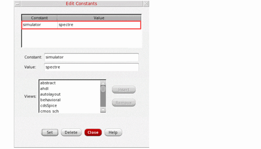 simulatorthrough the Edit Constants form in Virtuoso Hierarchy Editor. -