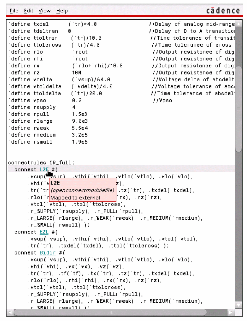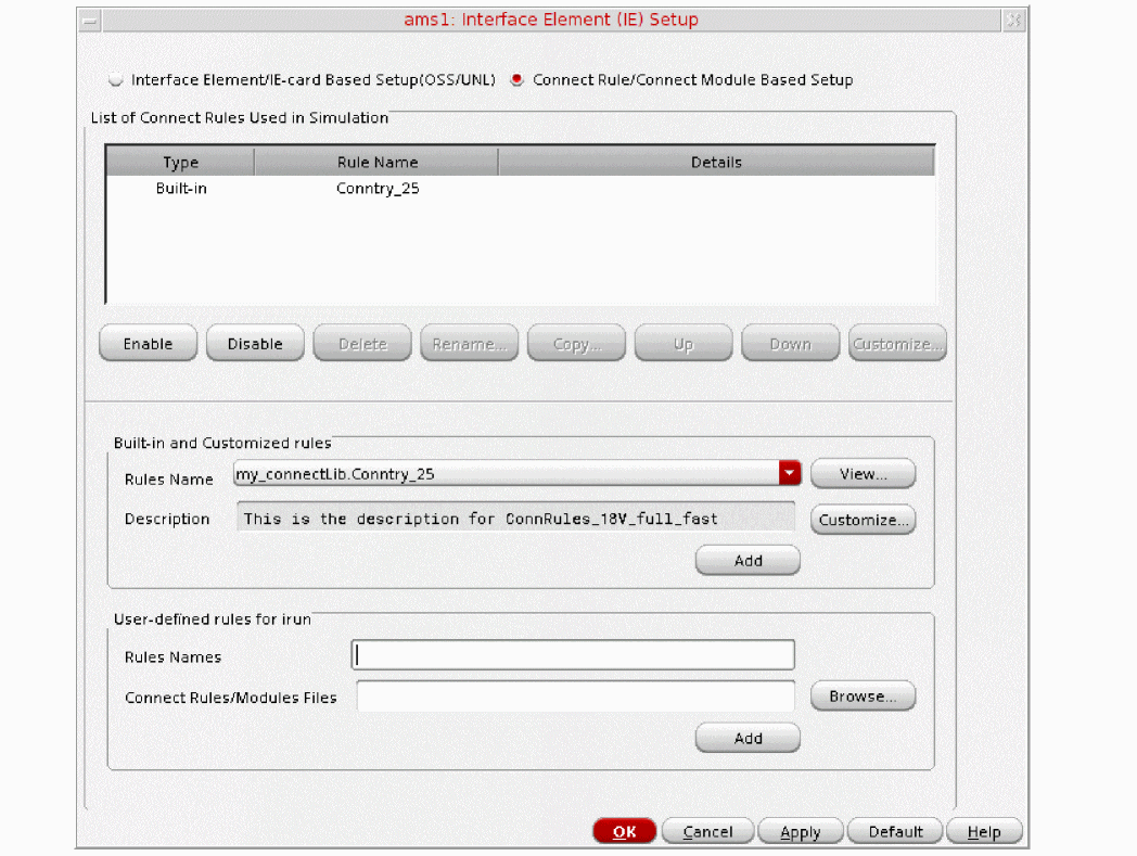 The inserted connect modules then convert signals to values that are appropriate for each discipline. To customize the conversions for your design, you can use the connect rules to override parameters, such as supply voltage or rise time, that are used in the connect modules.