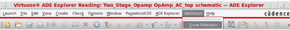 By default, the Virtuoso Schematic Editor does not have a SimVision menu. To add it to the toolbar, select Launch – Plugins – Mixed Signal Options – SimVision.