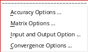 - Click DC Analysis Options – Matrix Options to specify ITL1. ITL2, NOPIV, PIVOT, PIVREF, PIVREL, PIVTOL using the Hspice Matrix Options form.