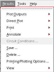 You can save, select, delete, restore, plot and print a set of simulation results using the Results menu.
