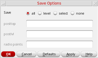 - All—Select this option to save all the outputs. After you select this option, the posttop, postlvl, and radio points fields become unavailable.