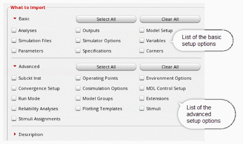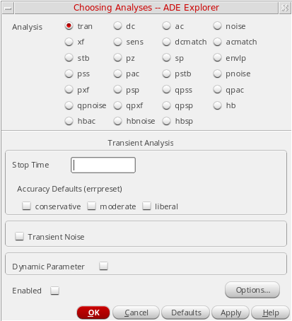 After you specify a simulator, you need to choose the analysis type on which you want to run simulation. These analysis type vary according to the simulator you select.