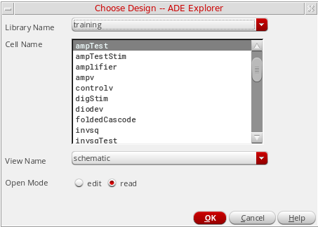 The Choosing Design form also appears when you create a new maestro view and open Explorer using CIW and Schematic window. For more information about opening Explorer using these methods and choosing a design, see Opening Virtuoso ADE Explorer.