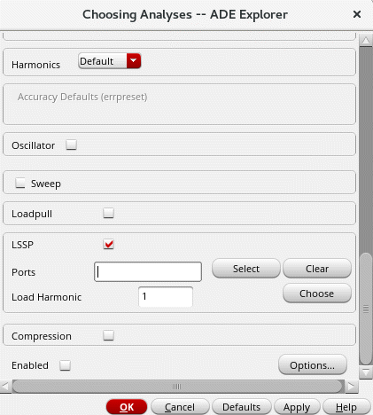 Select the LSSP check box in the Choosing Analysis form for harmonic balance analysis.