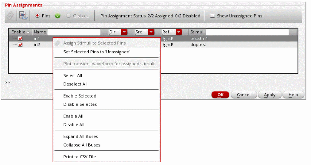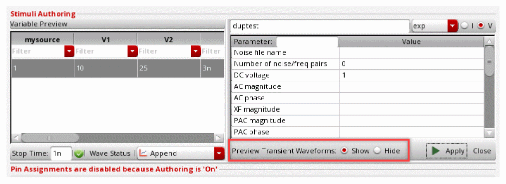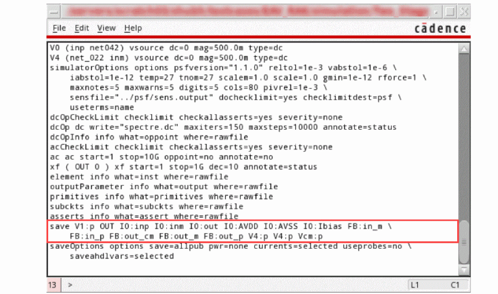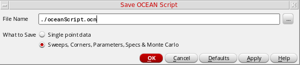ocnxlSetXLMode()and saves simulation commands for corners and Monte Carlo. The OCEAN L script does not save any XL related information even if the ADE Explorer setup contains corners or Monte Carlo. In addition, when an OCEAN XL script is saved using ADE Explorer, the simulation run modes that are not supported in ADE Explorer are not written to the script. -