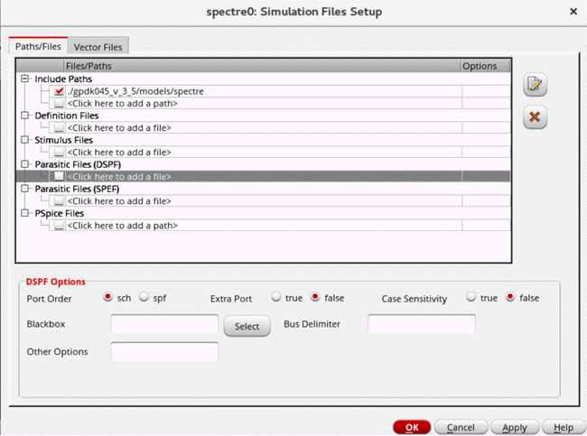 The model files contain all model definitions referred to by your design and not defined within the Virtuoso library. Unless you specify a full path, the simulator assumes that you are using the project directory.