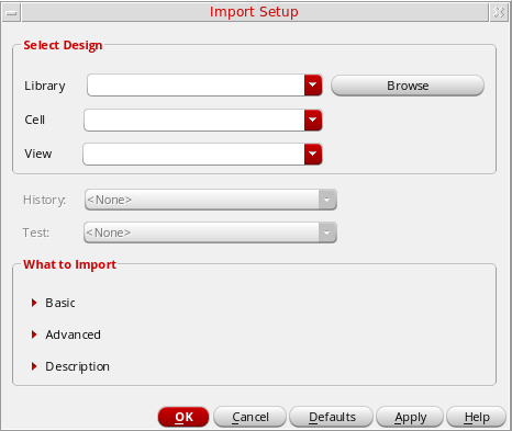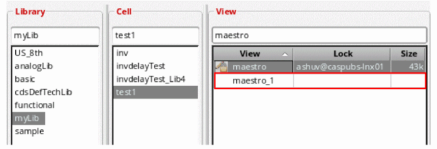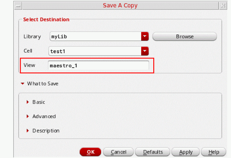 - In the Library Name, Cell Name, and View Name fields, choose library, cell, and view names.