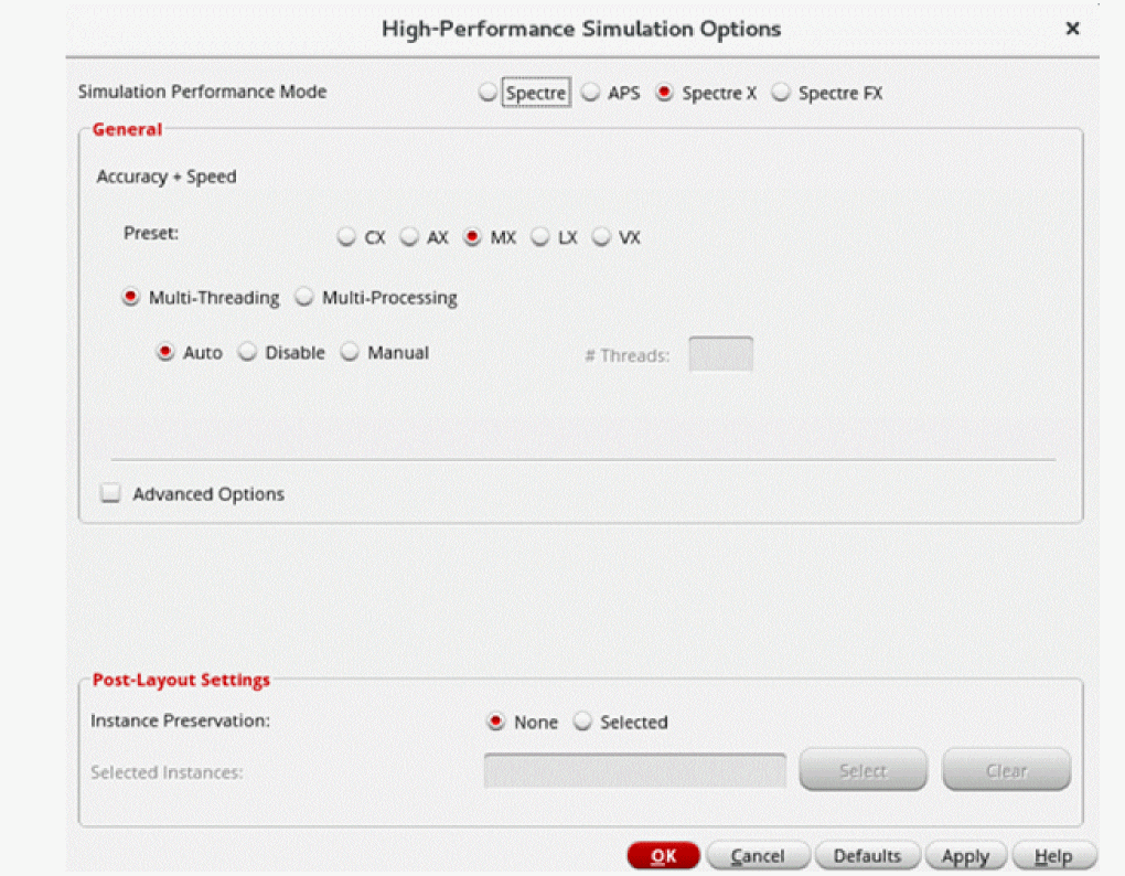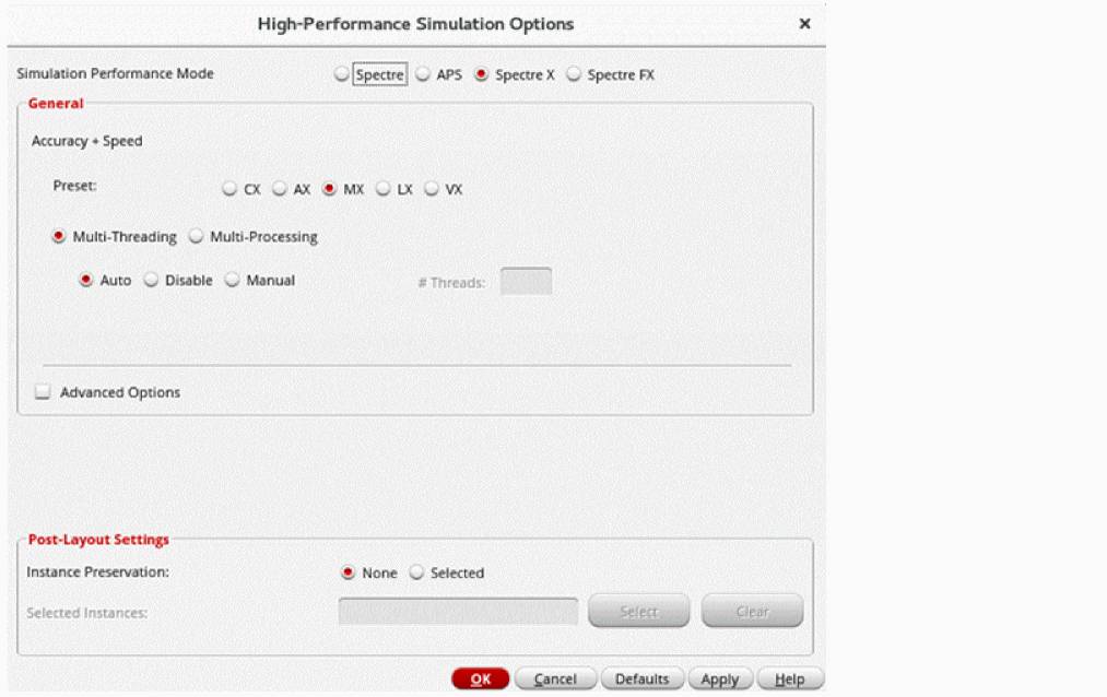 When the simulator is set to Spectre, do the following to set up the ACPR (Adjacent Channel Power Ratio) and LSSP (Large Signal S-Parameter) options: