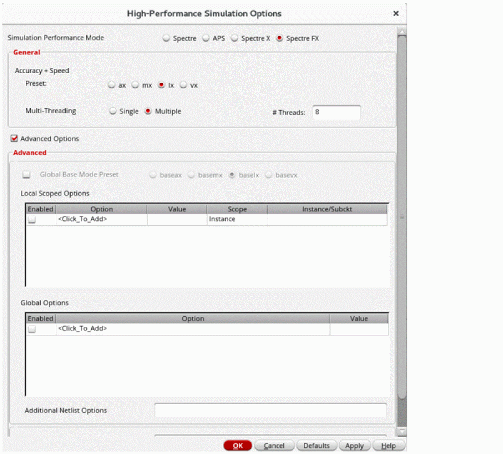For more information about the fields on these forms, see Spectre Circuit SImulator and Accelerated Parallel Simulator RF User Guide and Spectre Circuit SImulator RF Analysis Theory.