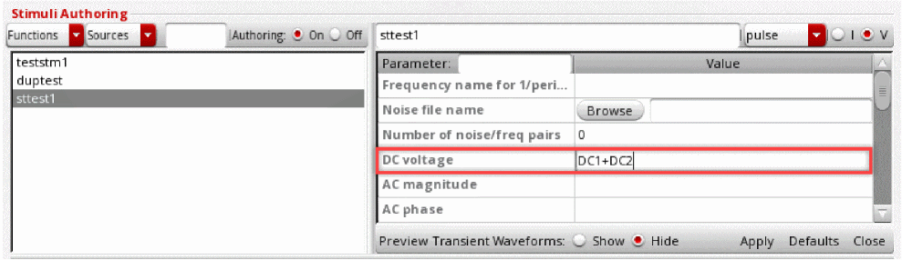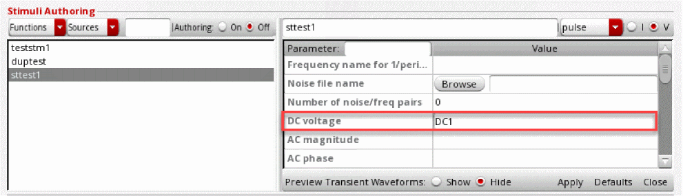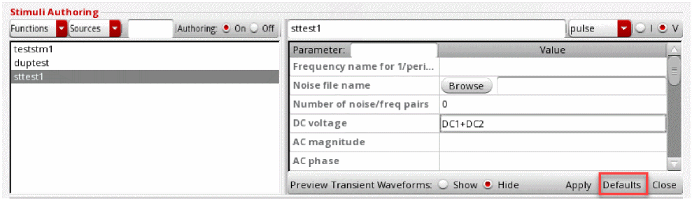 You can set the default values for fields in analog circuit design environment forms by setting variables in your ~/.cdsenv file.