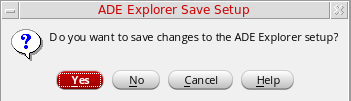 Click Yes to save the current setup of the ADE Explorer. Click No to close the session without saving setup or click Cancel to continue working in the current setup.