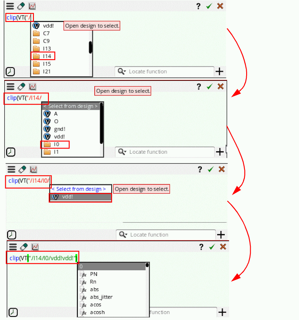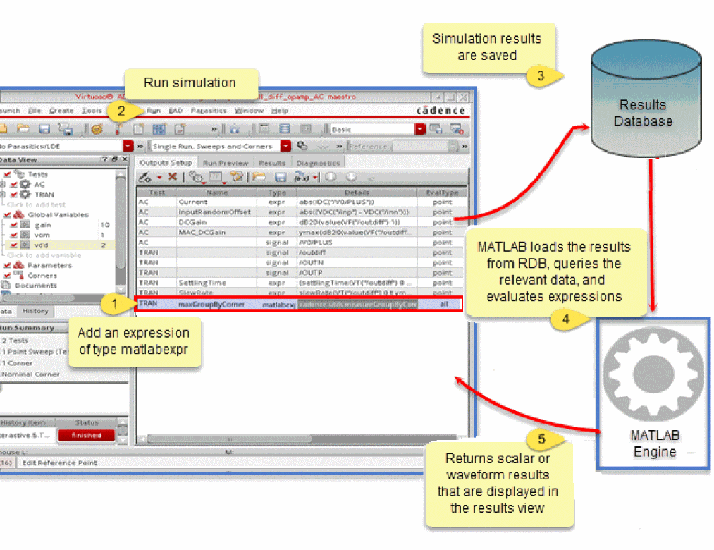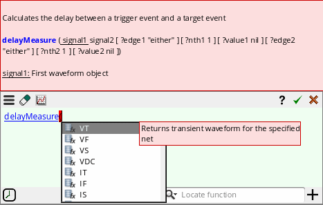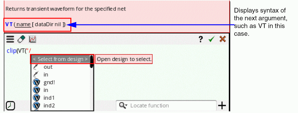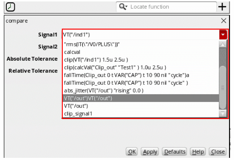 If you want a dependent expression to be based on a signal, create an expression based on that signal and use the name of that expression in a dependent expression. For example, create an expression namedmyVout2Exprbased on the signalVout2and then usemyVout2Exprin a dependent expression. - Error messages, if any, regarding dependent expressions are displayed in the Command Interpreter Window (CIW).