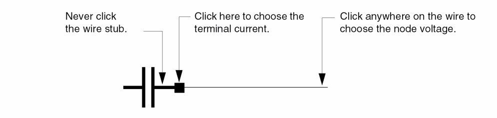 A circle appears around each pin when you choose a terminal and wires appear highlighted when you choose a net. You can alternate between selecting a terminal and selecting the wire to which it is connected.