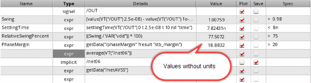 For example, if you specify the unit value asdBfor an expression namedGain, the measured results for the expression is displayed with the unit valuedBin the Results tab of the Outputs pane. -