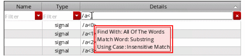 The expression appears in the Details field. If the expression uses a signal or net that does not already exist in the outputs table, a new row for an output of type