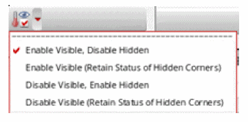 - Enable Visible (Retain Status of Hidden Corners): Enables all visible corners. The status of hidden corners is retained. Therefore, after this command is used, the set of enabled corners includes the visible corners and the hidden, but enabled corners.