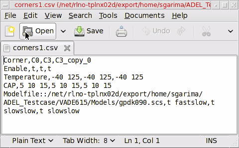 When you specify a model file for a corner in the column for that corner, the cell corresponding to the model file shows default text <section>. This implies that the corner uses all the sections defined in the specified model file. If required, you can specify a selected set of sections of the model file that you want to use for the corner.