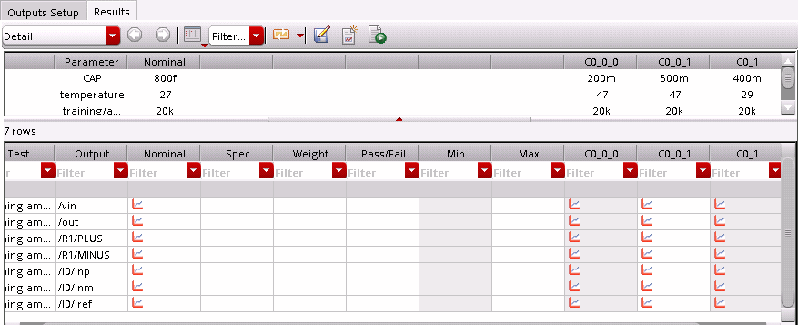 In case of a corner group, a column is displayed in the Results tab for each combination of corner parameters. Based on the results, if you want to create a corner by using the values of variables used for a particular data point, you can create a copy of that corner. For this, right-click in the corner column and choose Create Copy of Selected Corner. A new corner is created with the name same as that of the corner column, prefixed with Copy_.