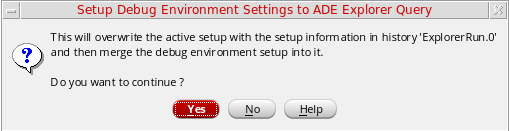 If you click Yes, ADE Explorer overwrites the active setup with the setup information in the history item for which you debugged the data point. For example, if you debug a data point in a history item named