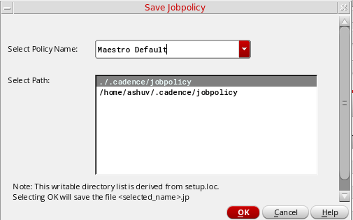 The default job policy for ADE Explorer is Maestro Default. You can also define a custom job policy, save it with a unique name in the.cadence/jobpolicy directory and set it as default by using the defaultJobPolicy environment variable.